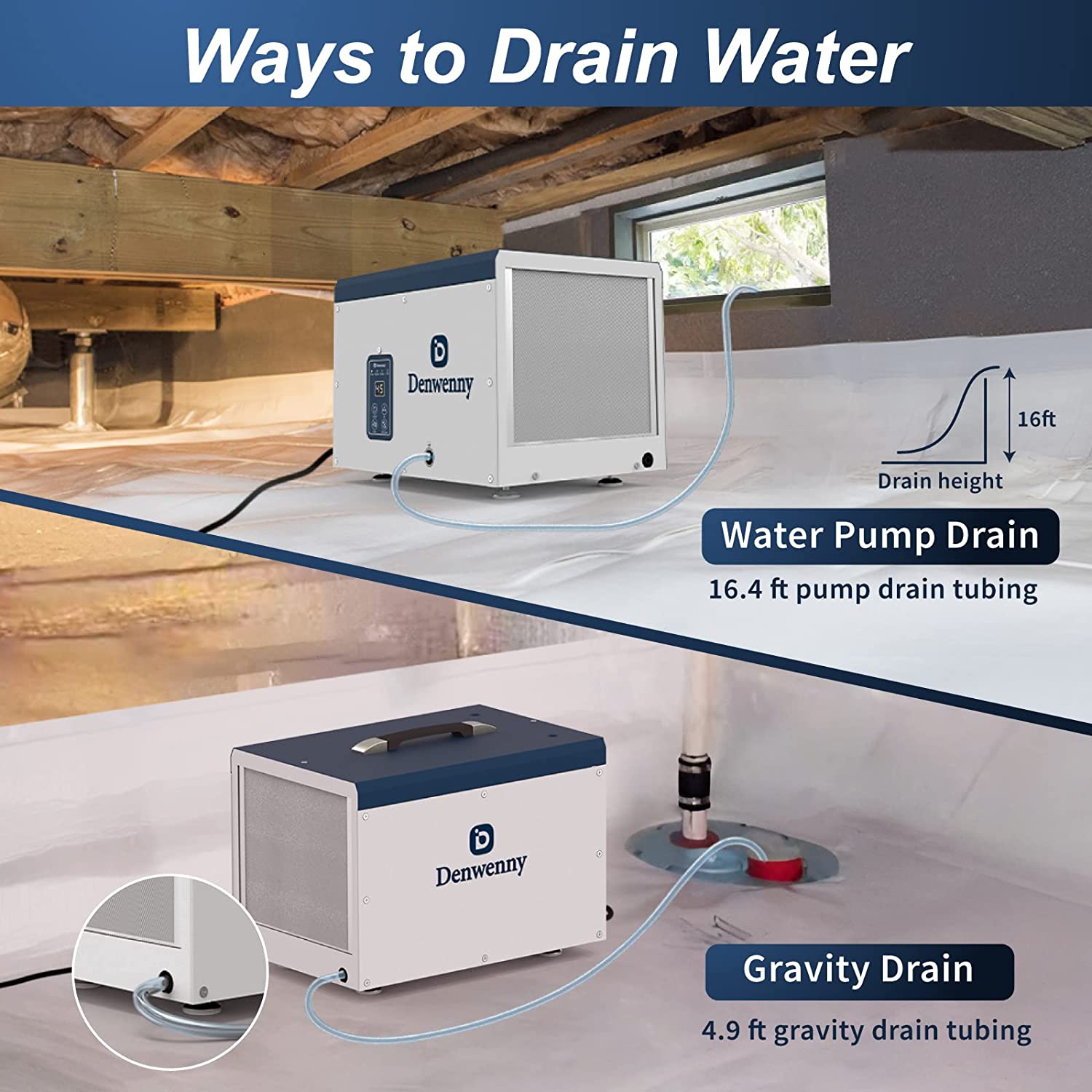 - 💦【Dehumidifier with Pump for Easy Drainage】👊 The internal pump will automatically start up to remove the collected water, ensuring worry-free drainage.The 16.4 ft long drain hose and 16 ft drain vertical height maximize the flexibility of installation.so you never experience downtime due to a full water bucket.👊 Gravity Drain: By using the dehumidifier 4.9 ft long drain hose connection to empty water into your floor drain.